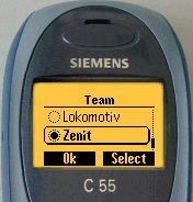 ... private void showTeamList() { List list = new List("Team",Choice.EXCLUSIVE); list.append("Rotor", null); list.append("Lokomotiv", null); list.append("Zenit", null); list.addCommand(okCommand); display.setCurrent(list); } public void commandAction(Command cmd, Displayable d) { if (cmd == okCommand) { int i = (List)d.getSelectedIndex(); // делаем что надо } } ...