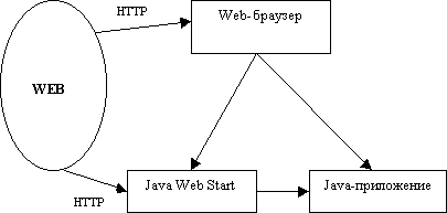 Пользователь кликает по ссылке HTML-страницы в веб-браузере, появляется splash-окно Java Web Start, после чего запускается приложение, которое готово к работе.