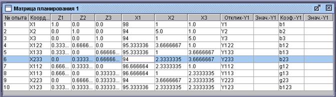 - значение функции отклика (Y1) в соответствующих точка, которые получены в результате про-ведения эксперимента;