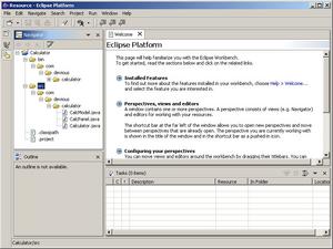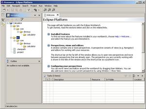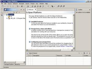 Панели File Navigator, Code Outline и Task List отображены, но на данный момент не содержат никаких данных. Чтобы продолжить знакомство с Eclipse мы создадим простое Swing-приложение программу-калькулятор. Распишем действия по шагам: