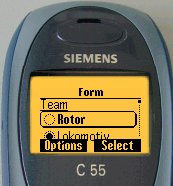 ... ChoiceGroup choiceGroup; private void showTeamList() { Form form = new Form ("Form"); ChoiceGroup choiceGroup = new ChoiceGroup ("Team", Choice.EXCLUSIVE); choiceGroup.append ("Rotor", null); choiceGroup.append ("Lokomotiv", null); choiceGroup.append ("Zenit", null); form.append (choiceGroup); form.addCommand (backCommand); form.addCommand (okCommand); form.setItemStateListener (this); form.setCommandListener (this); display.setCurrent (form); } public void itemStateChanged ( javax.microedition.lcdui.Item item) { if (item == choiceGroup) { System.err.println ("choiceGroup = " + choiceGroup.getSelectedIndex()); } } ...