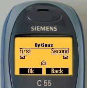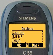 ... private void showOptions() { Form form = new Form ("Options"); StringItem countryItem = new StringItem ("Country", "Russia"); StringItem townItem = new StringItem ("Town", "St-Peterburg"); form.append (countryItem); form.append (townItem); form.addCommand (backCommand); form.addCommand (okCommand); form.setCommandListener (this); display.setCurrent (form); } ...
